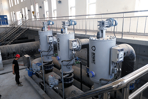 BOWNT-BOS是自动清洗过滤器, 配有过滤元件-网芯,可截留大于过滤等级或是和过滤等级相同的杂质。在过滤器端盖上安装一个排污阀。工作时,水流从过滤器进口流入,经过滤网后从出口流出,当水流中的杂质颗粒不断地在滤网的内表面堆积,使得过滤器的进、出水压差增大,当过滤器进、出水压差达到预定值时(0.05MPa),压差开关便传递信号给控制装置,控制装置启动排污进程,同时打开排污阀,污物从排污阀排走,清洗时设备不断流。